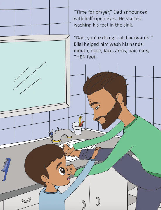 Why is Dad brushing his teeth with a comb? Has Dad forgotten how to make wudu? Where is he trying to go on Bilal's tricycle? And most importantly, where exactly is Mom?