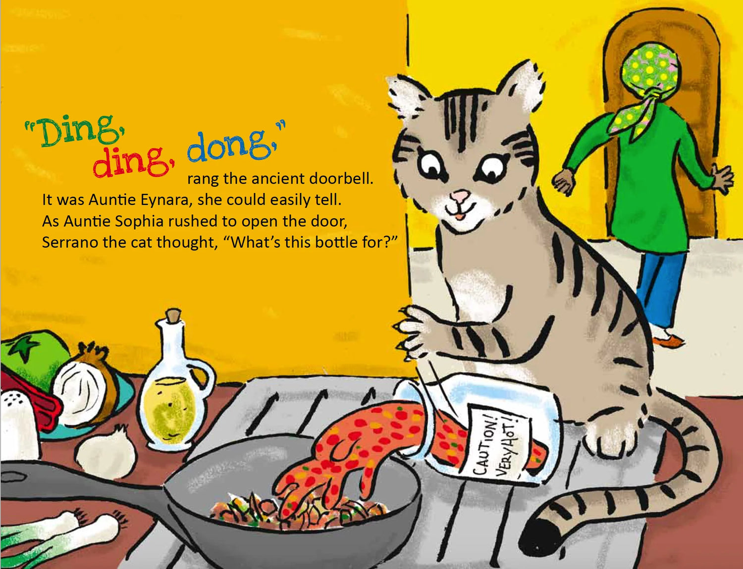 Auntie Sophia is making her special out-of-this-world samosas for the mosque iftar. But this samosa pro doesn't know that her kitty, Serrano, has some sneaky plans to alter her recipe! What will happen when she accidentally swallows a far too spicy pastry WHOLE?