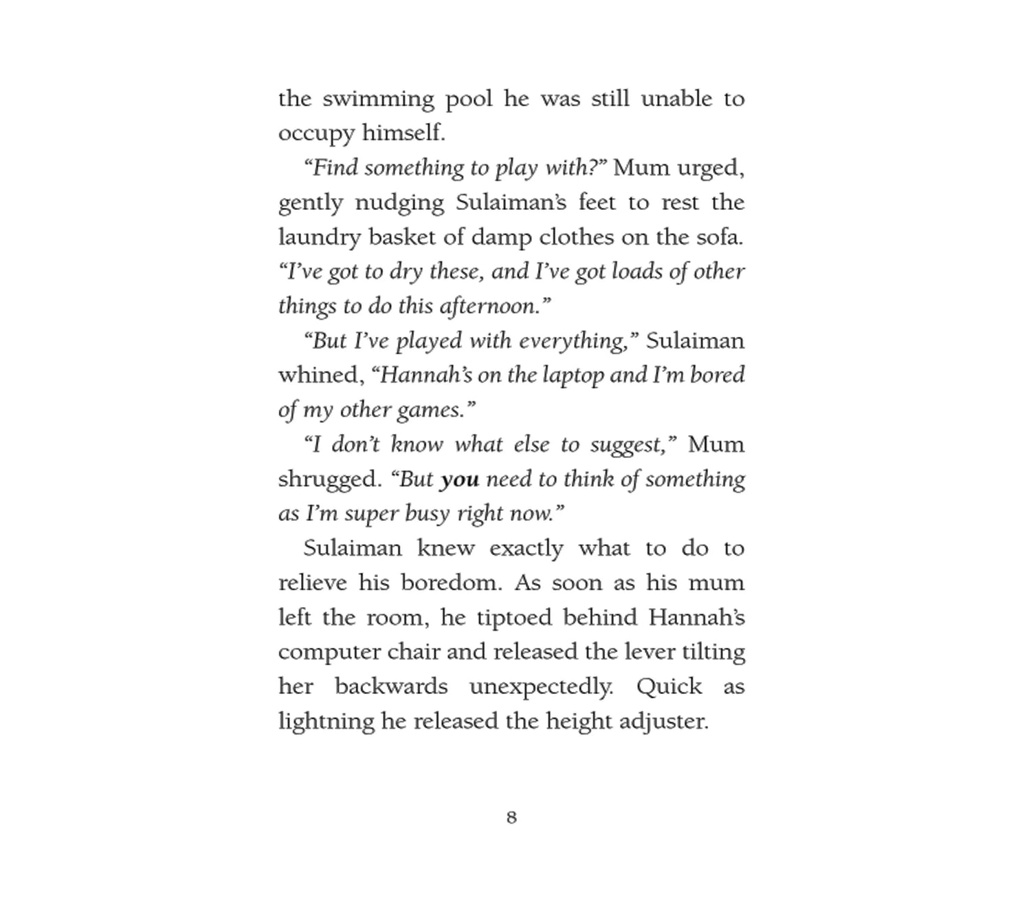 Sulaiman learns the importance of controlling his temper and discovers that there are other ways to diffuse or resolve an argument. Through his journey, he also develops a friendship with his challenging neighbour. Ultimately, this story aims to teach children the value of managing their anger and finding peaceful solutions to conflicts.