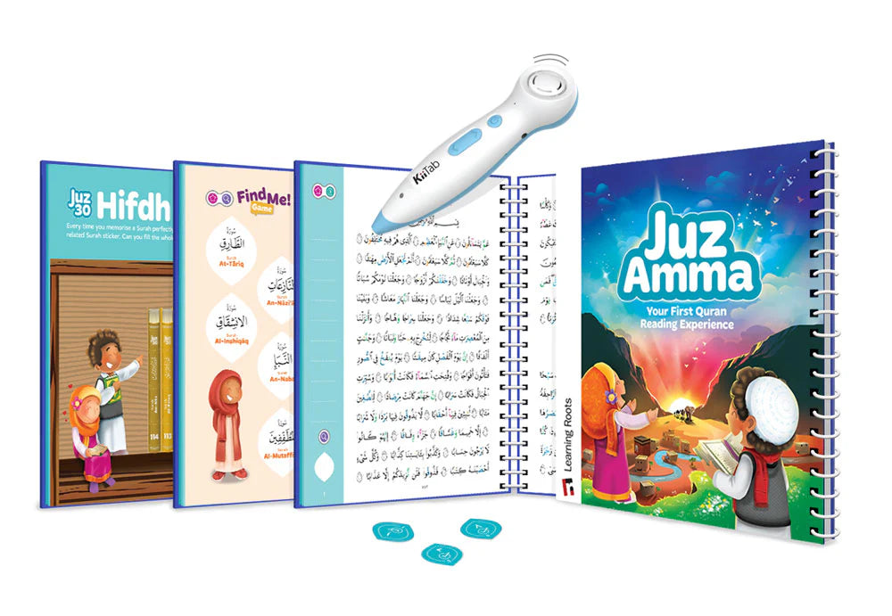 - Each page of Juz Amma works with Kiitab, our speaking pen, so that your child can listen to, repeat and master each verse.