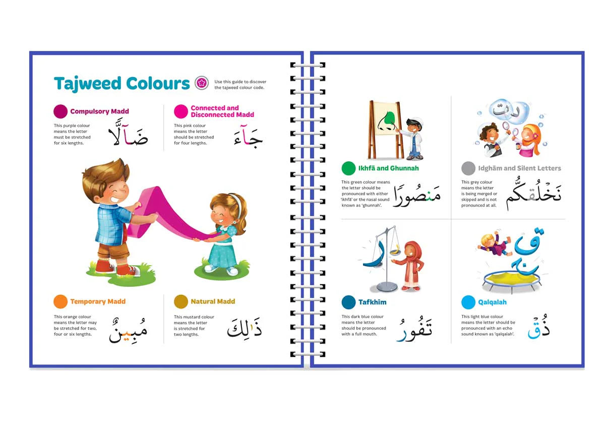 - This book includes incorporates the same Tajweed colour codes used in the world-famous Madinah Uthmani Script Mushaf, making it easy for your child to recognise the tajweed rules accurately wherever they occur.