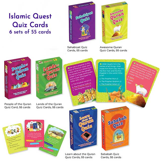 Get the full Islamic Quest Quiz Cards, 6 quiz sets of 55 cards each, with insightful multiple-choice questions on fascinating topics, perfect for the classroom, holidays or simply playing at home with your friends and family!