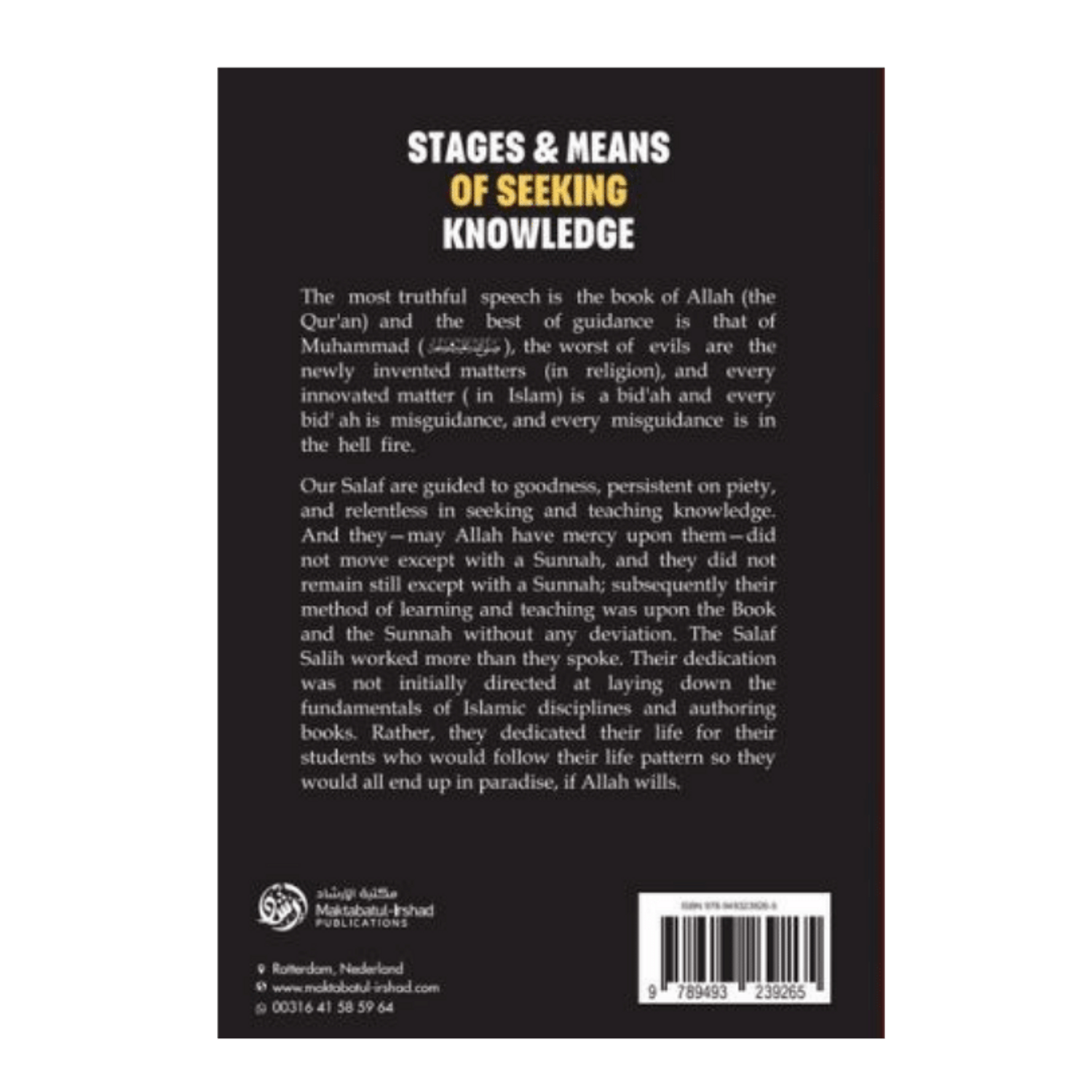 It is an excellent manual for every student of knowledge, knowing how to start and progress in seeking knowledge.