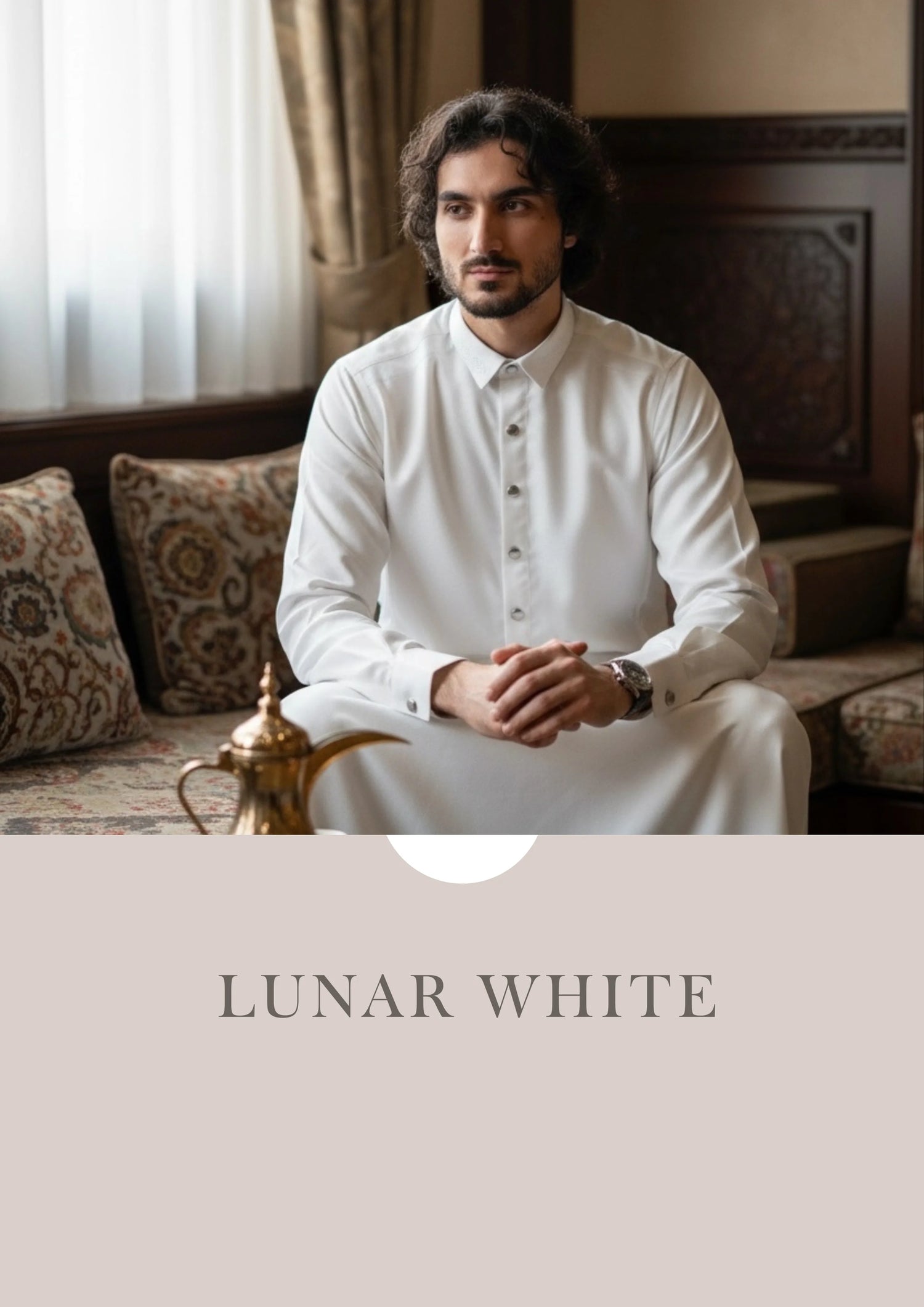 The AAR2637 Al Ameer Thobe is defined by refined detail and elevated craftsmanship. Made from premium woven fabric, it features a textured, patterned collar, clean front fastening, and precise stitching for a sophisticated, modern finish. Designed to balance comfort with distinction, this piece reflects understated luxury rooted in Arabian heritage and refined through British design.