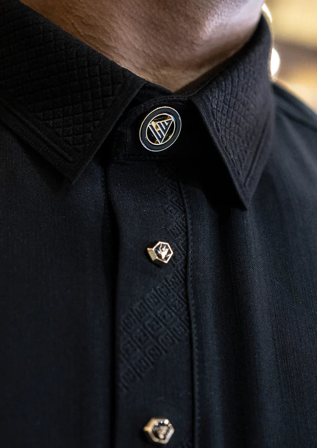 Introducing the AAR2639 —is a statement of refined luxury. Crafted from premium textured fabric, it features a deep black finish, signature Al Ameer emblem button, and subtle patterned detailing woven into the placket. Precision tailoring and elevated hardware deliver a bold yet understated presence, reflecting Arabian heritage refined through British craftsmanship.